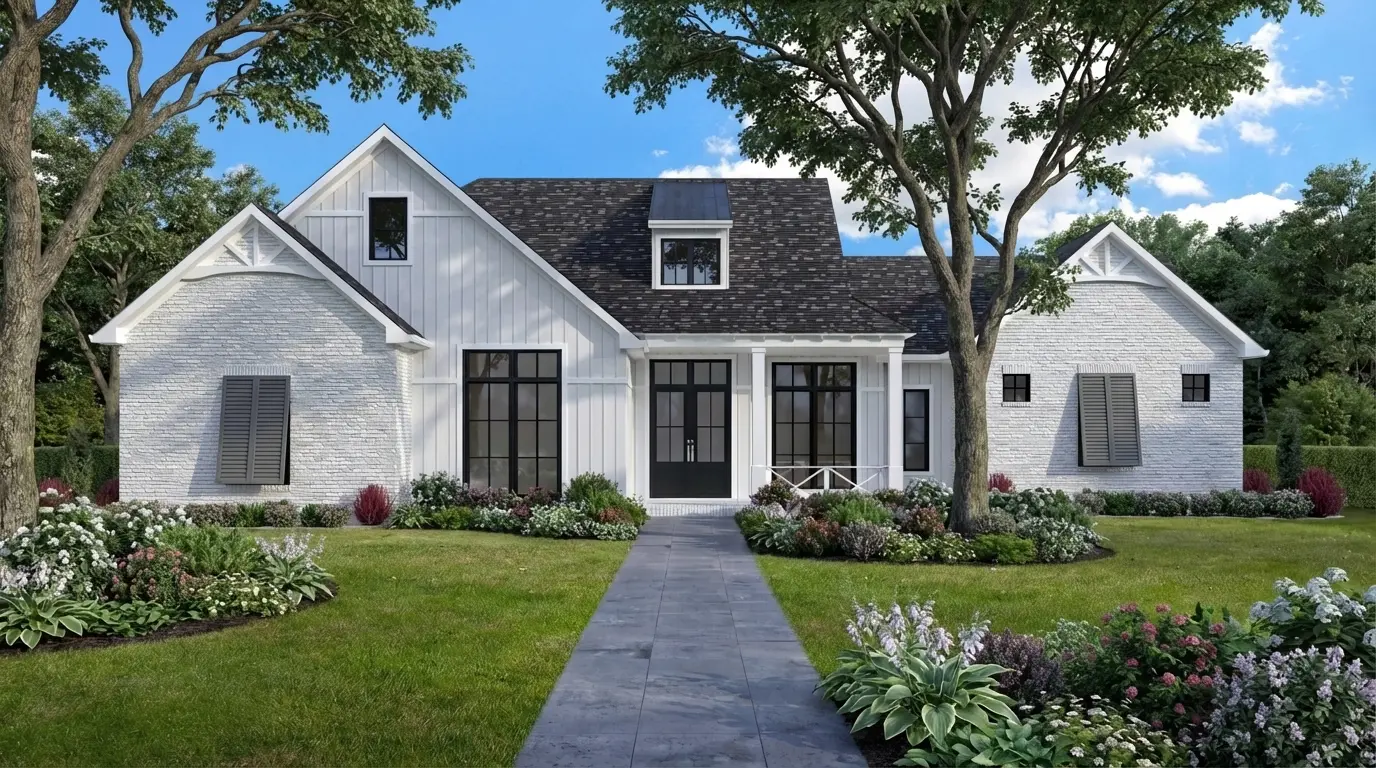 Imagine waking up in your dream farmhouse, the Plan 20-037. This isn't just a house; it's a lifestyle. With its sprawling 2495 square feet of heated living space, this single-story home offers the perfect blend of comfort and functionality. Picture yourself enjoying your morning coffee on the inviting front porch, the sun gently warming your face.